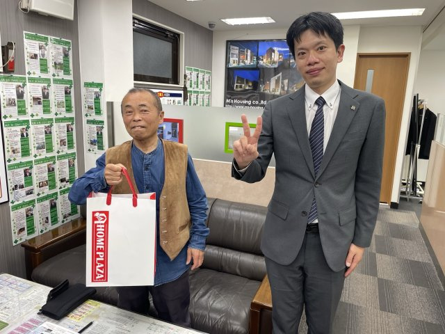 この度はご契約おめでとうございます。M様のご希望条件にあった物件を見つけることができて私も嬉しいです。今後ともお役に立てるようサポートさせていただきますので、宜しくお願い致します。